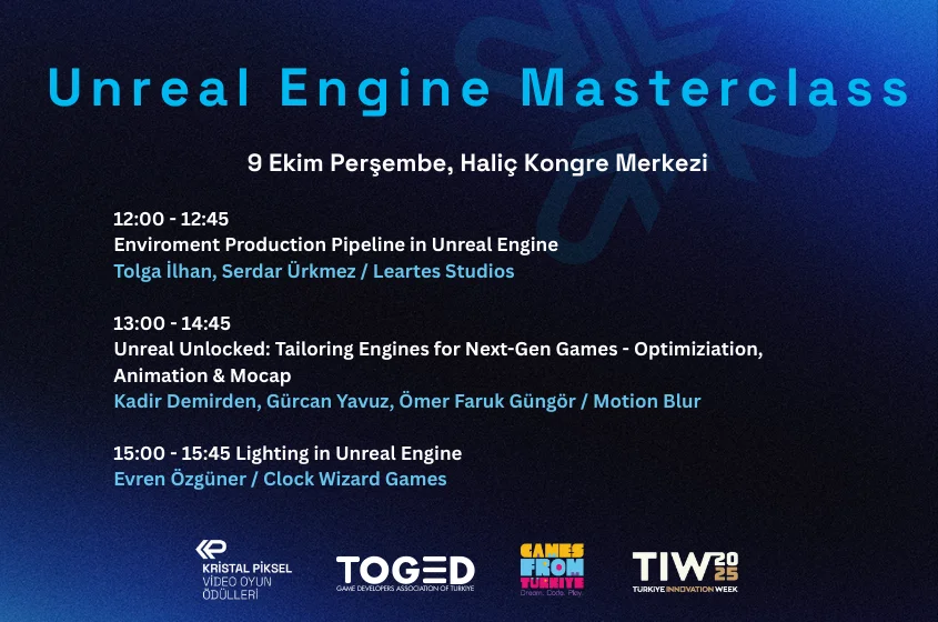 Burada amacımız oyun geliştiricilerin dilinde ve oyun geliştiricilere değer katacak etkinlikler tasarlayabilmek. Bu yüzden de işe ilk olarak teknik ve çok ihtiyaç olduğunu düşündüğümüz bir Masterclass ile başlamak istedik ve ilk etkinliğimizi Unreal Engine‘e odaklı planladık. İleri seviye teknik içeriklerle dolu bu seçkide, üretim hattından optimizasyona ve ışıklandırmaya uzanan üç yoğun oturum sizi bekliyor.